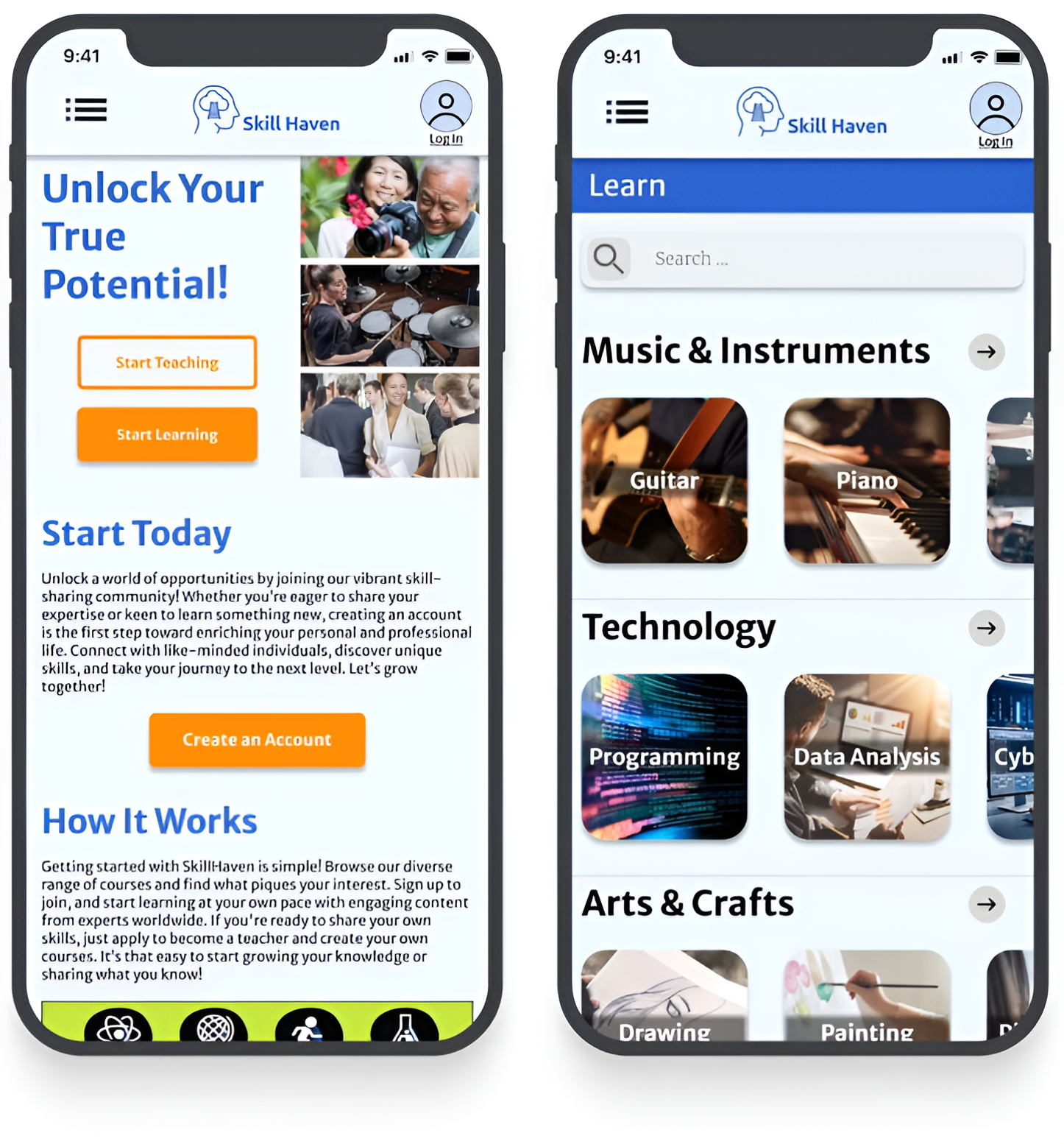 The goal of Skill Haven is to provide a user-friendly platform where people can easily share their expertise and learn from one another. I wanted to make sure the design felt approachable and intuitive to help build a supportive, dynamic community. It was my first time designing both a mobile website and a desktop version of a project. I used a mobile-first approach and utilized progressive enhancement to make sure the user experience was great on both platforms.